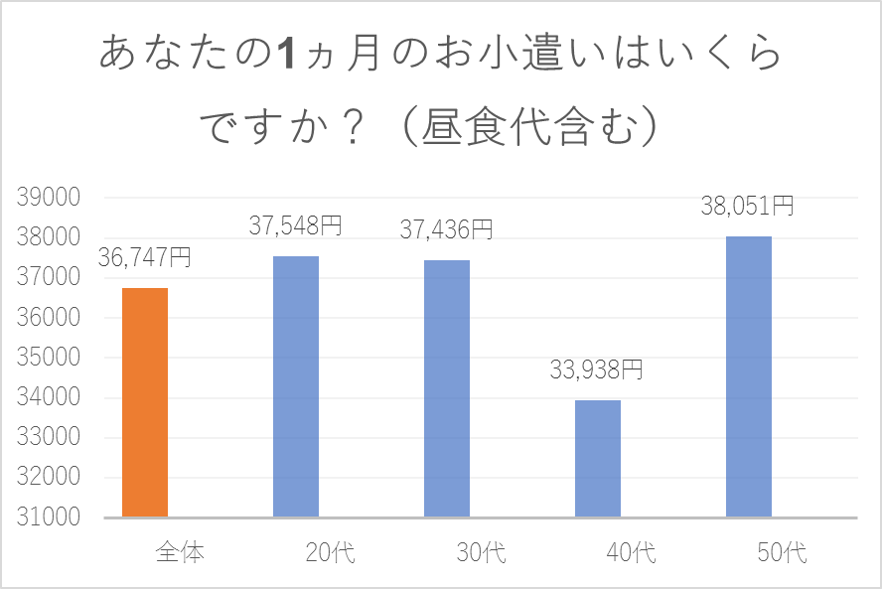 ちなみに、年代別で見てみると、20代30代40代と年代が上がるにつれてお小遣いの金額は下がっていますが、50代になるとお小遣い額がアップしています。一般的には50代になると子どもにお金がかからなくなる年代ということだと思いますが、ここまで来てやっと少し余裕が出てくるということなんでしょうね。