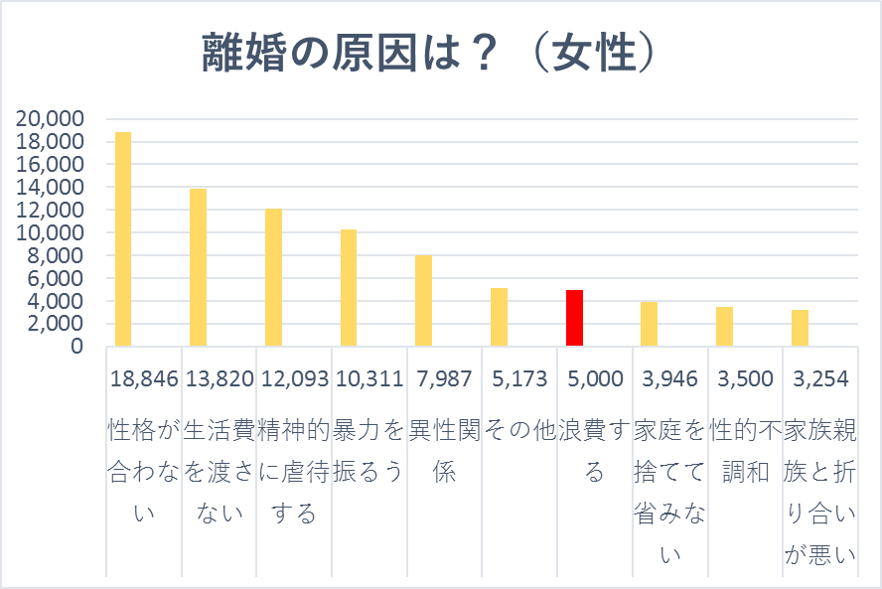 平成29年度の司法統計によれば、離婚した男女に聞いた離婚原因の第7位は、ともに「お金の浪費」でした。「お小遣い=浪費」に直結するとは限りませんが、お金の問題はこじれたら離婚につながる大きな問題だということはわかります。