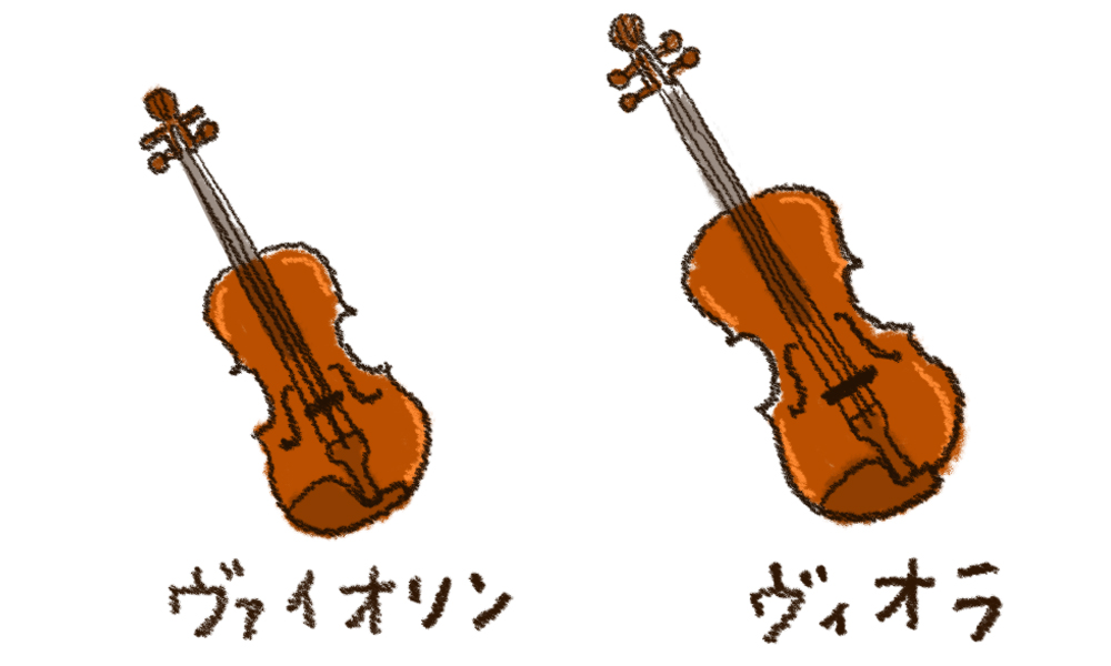 「ヴィオラ」の方が微妙に大きくて音域も広いよ!弓のサイズもほんのり大きいそう。