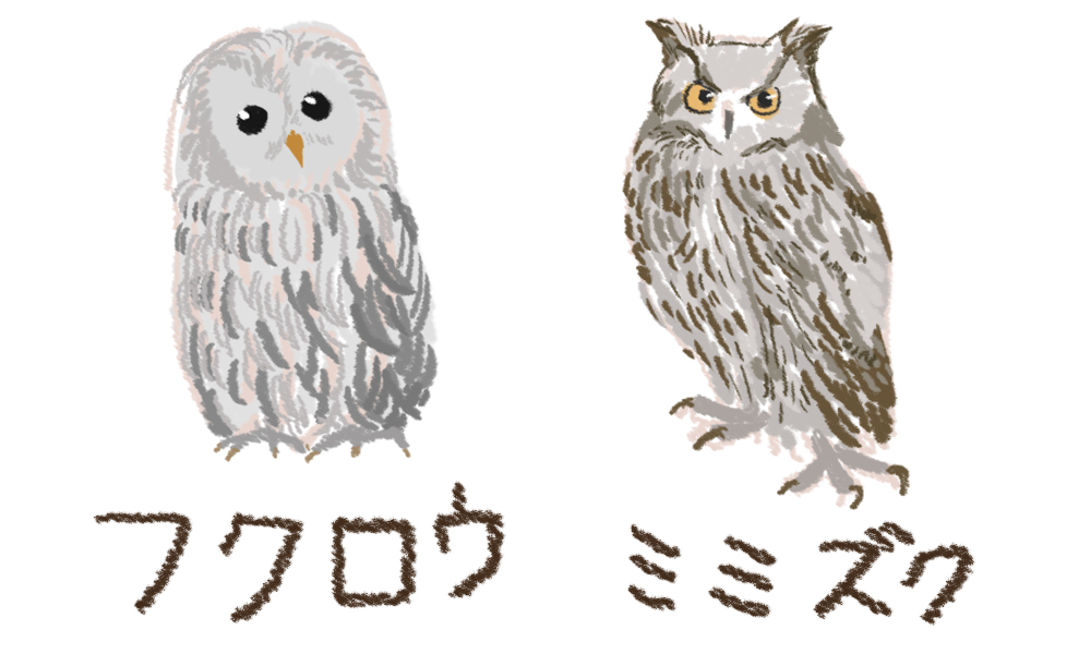 耳があるのが「ミミズク」覚えやすい!ズクは、フクロウの古語なんだって。