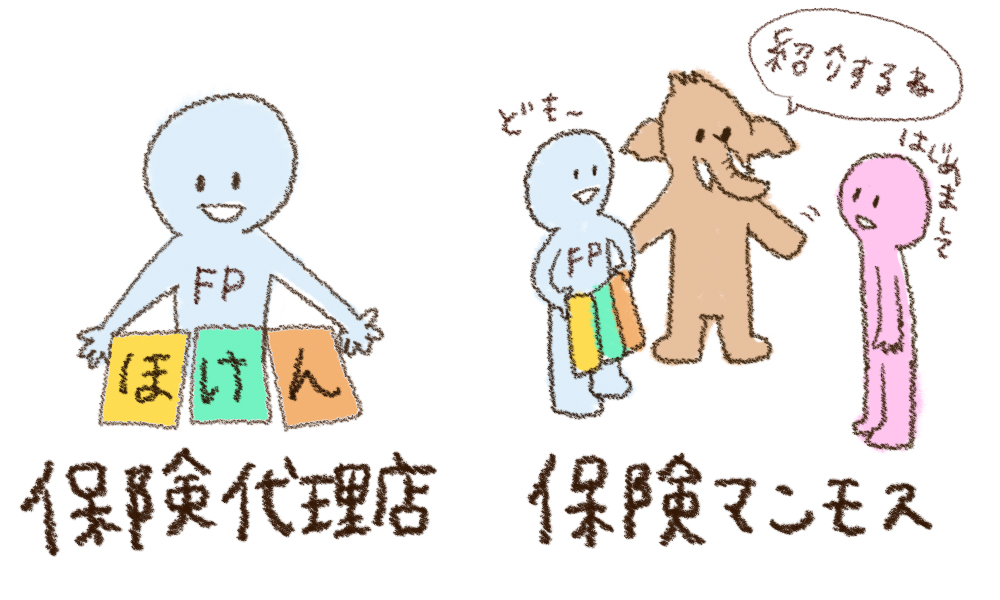 複数の保険を取り扱っているFP(ファイナンシャルプランナー)が所属するのが「保険代理店」、そのFPをお客様にご紹介するサービスを行っているのが「保険マンモス」!ここテストに出ます!