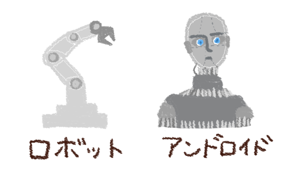 人の代わりに作業するのが「ロボット」、人型ロボットのことは「アンドロイド」