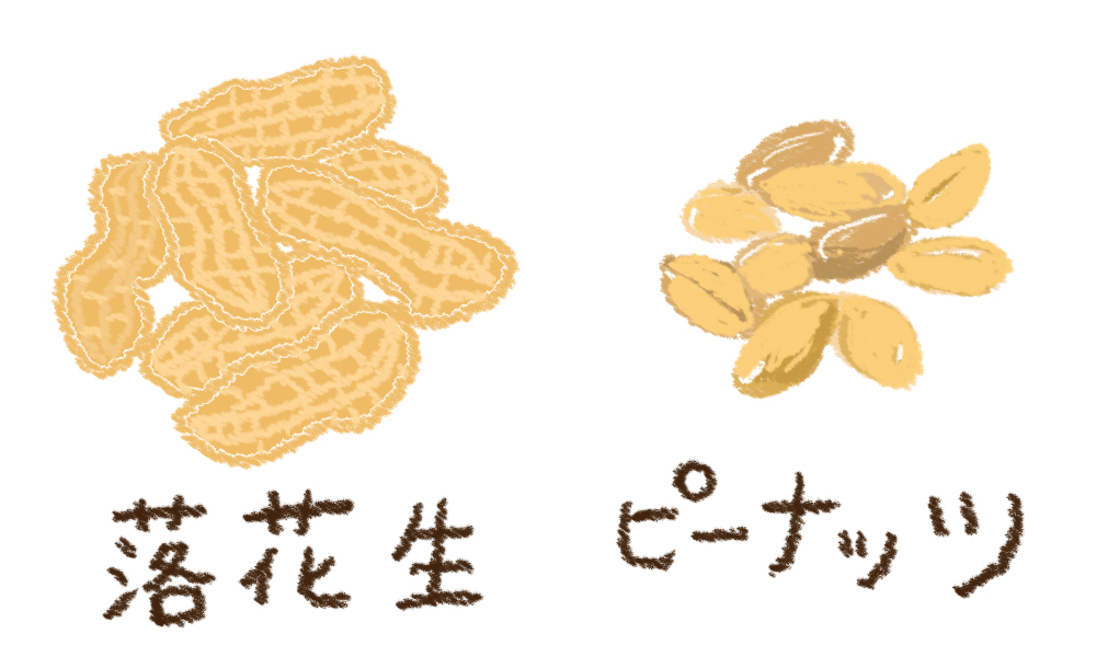 殻に入っているのが「落花生」、むかれたのが「ピーナッツ」