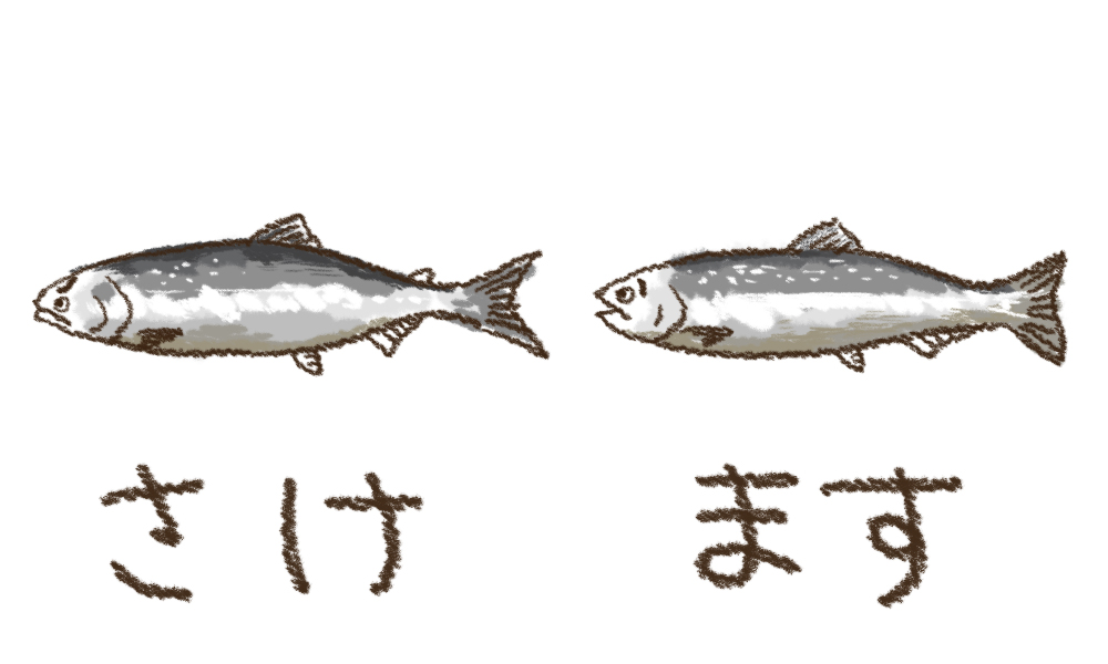 なんとなく、海外進出を目論む野心的な目をしているのが「さけ」、おっとりしているのが「ます」