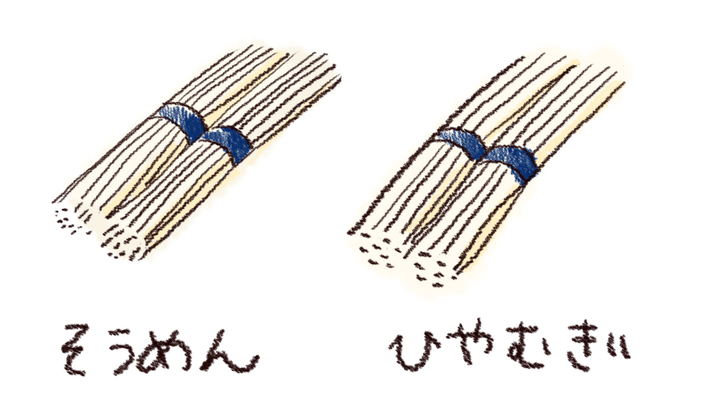 そうめんは長径1.3mm未満のものを指し、ひやむぎは長径1.3mm以上、1.7mm未満のものを指しているんだって。 原材料はどちらも同じなので、そうめんよりちょっと太いものはひやむぎだって覚えておこう!