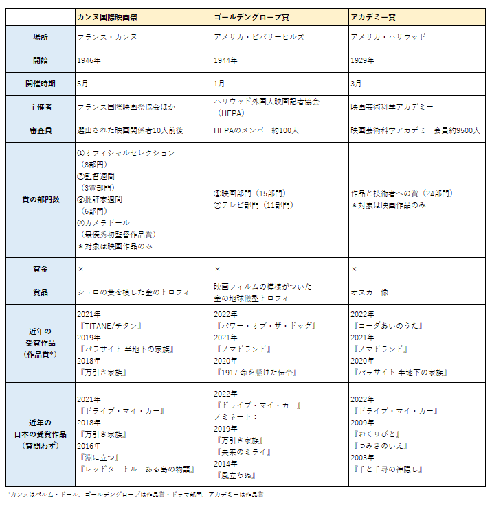 『ドライブ・マイ・カー』が受賞した3つの賞の違いとは?