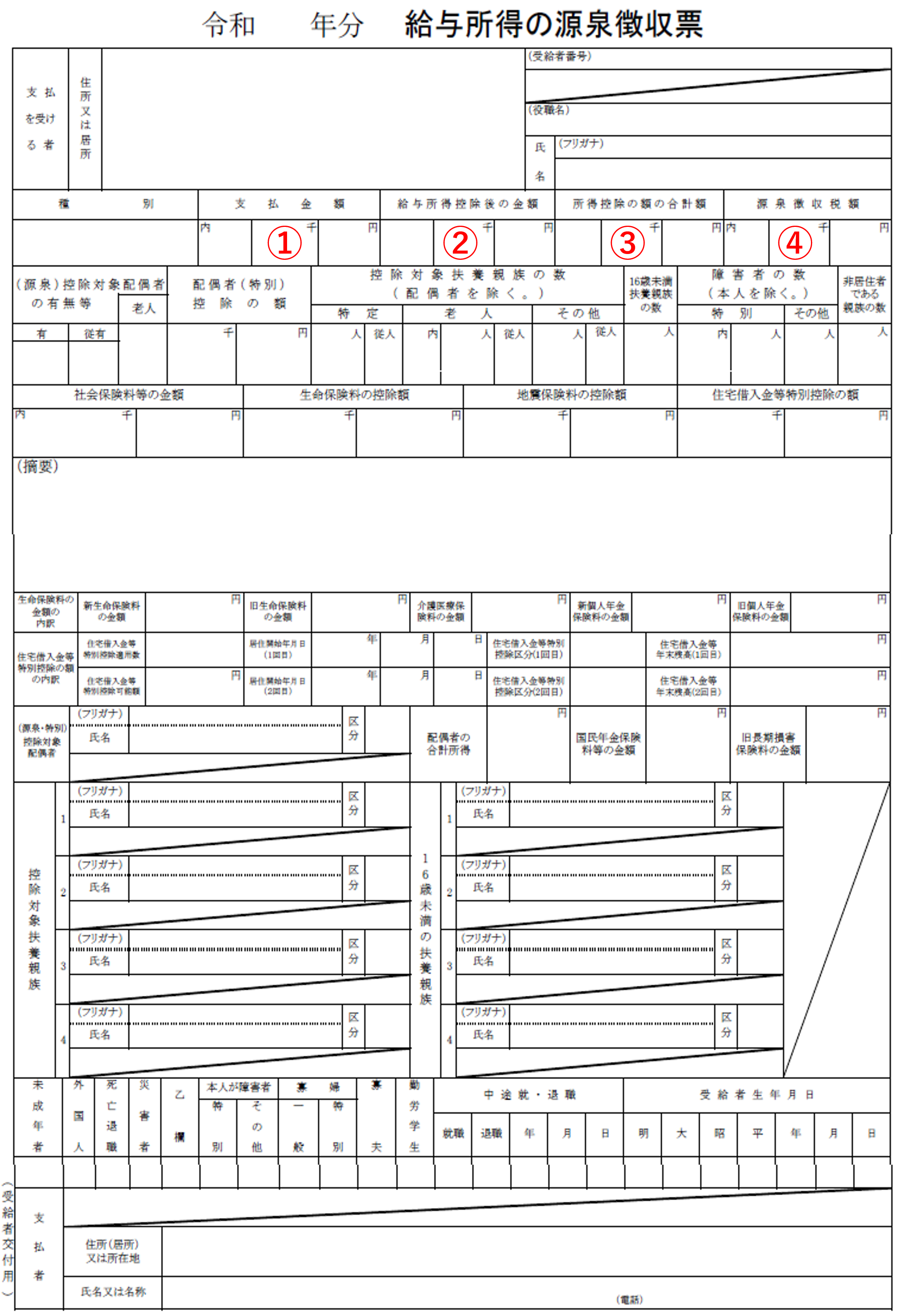 ①から④までまったく関係のない数字が並んでいるわけではなく、計算によって導き出すことができる根拠のある数字が記載されているのです。記載内容がわかるようになると、源泉徴収票を見るのがちょっと楽しくなります。