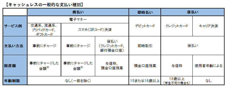 キャッシュレス決済は大きく分けて下記の3種があります。