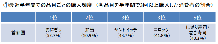 下表のように首都圏では調理済み食品の中でもおにぎりを購入する人が多いそうです。早速、おにぎりを自分でこしらえるのとコンビニで購入するのとでどれくらいの価格差があるか、検証してみます!